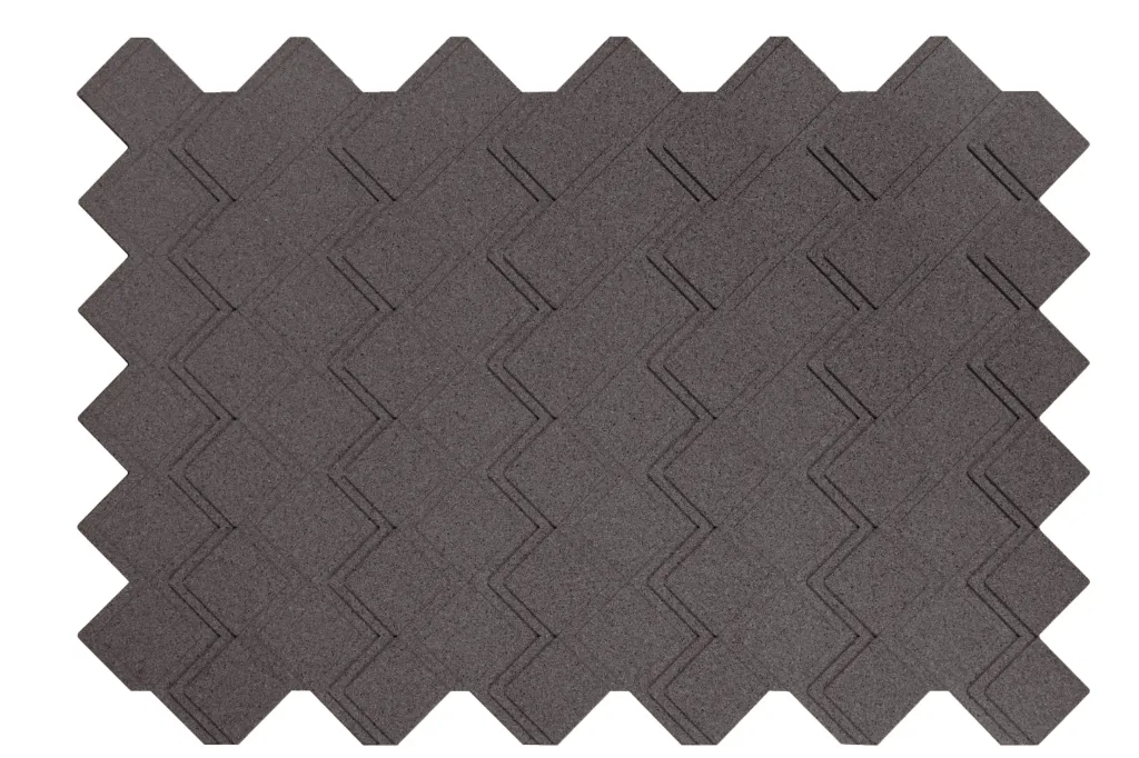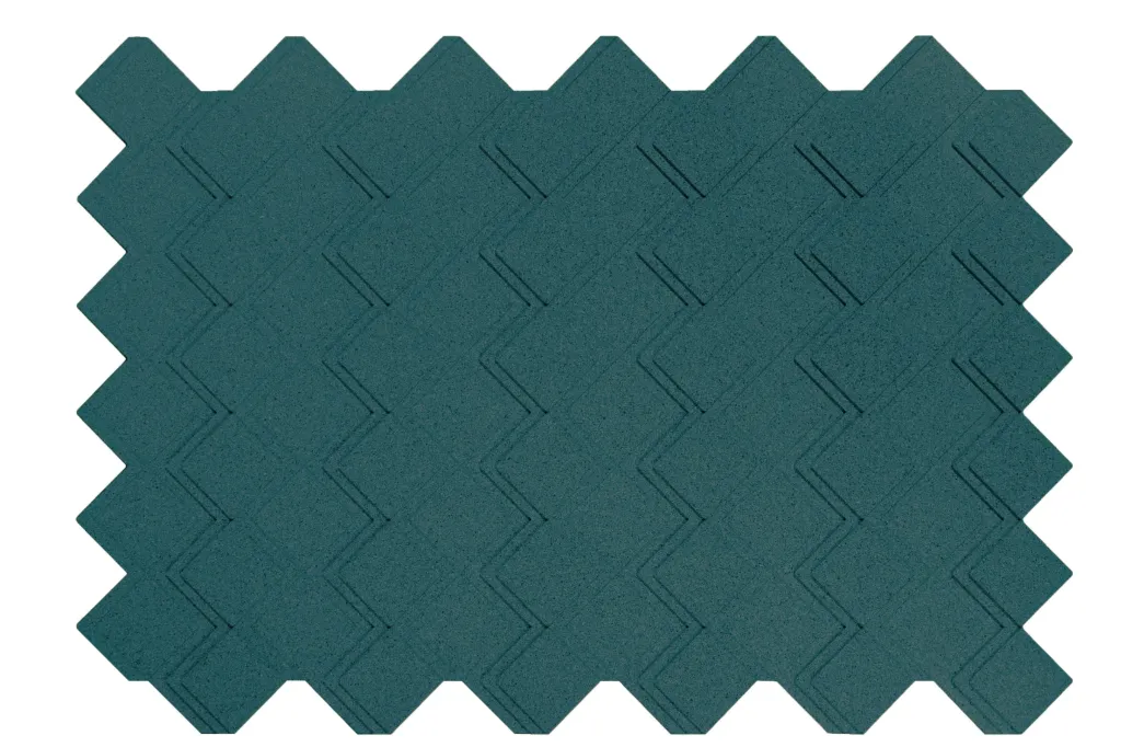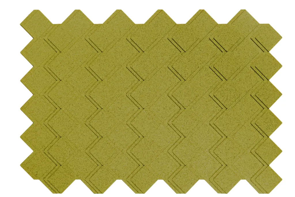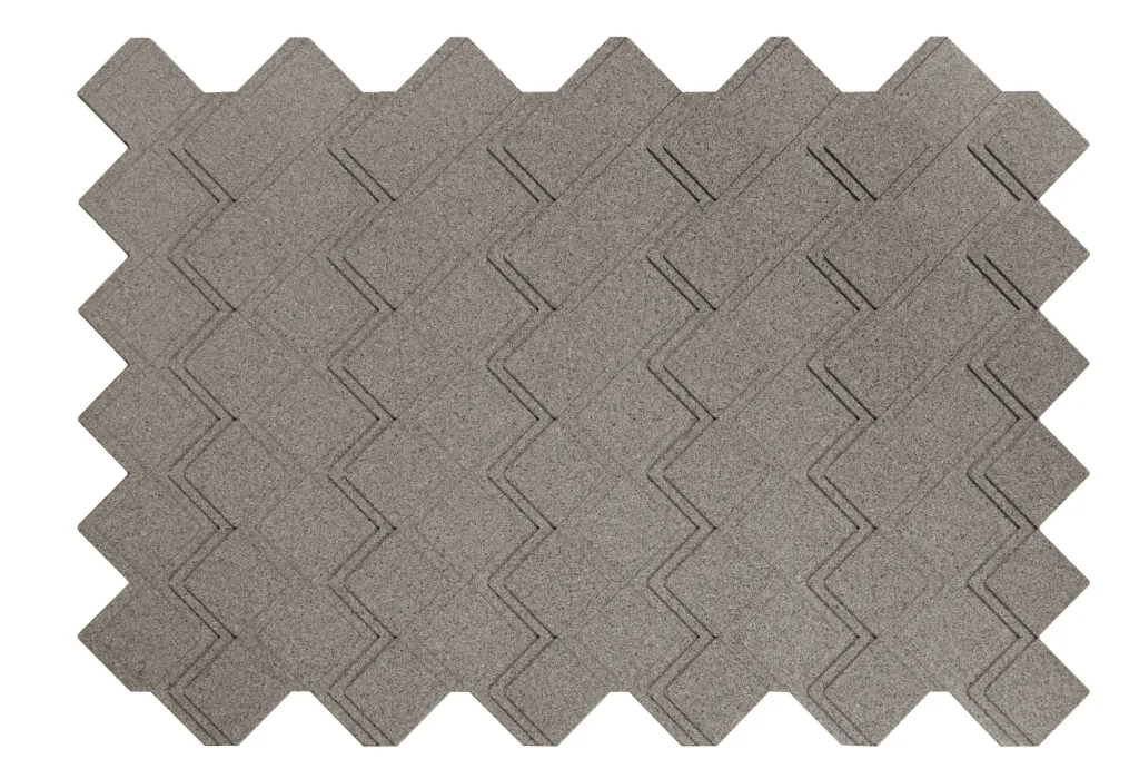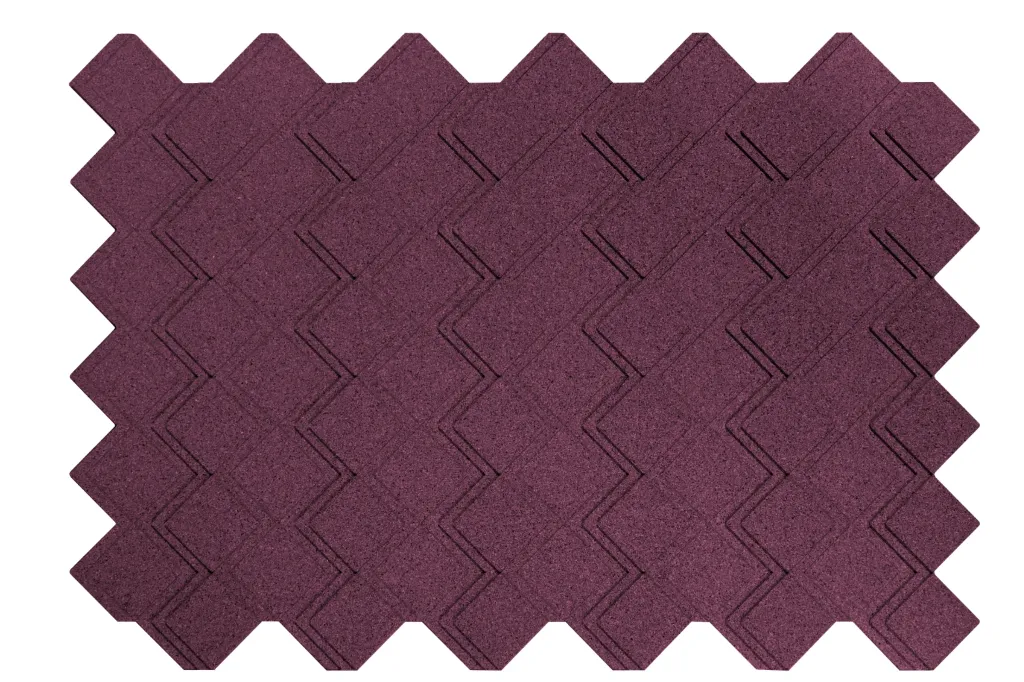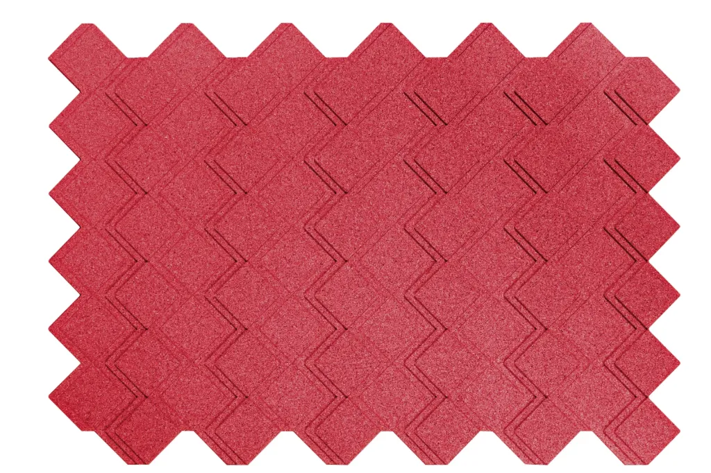 Peças maciças de cortiça aglomeradas com resinas e aditivos especiais, moldadas com pigmentação de cor na massa.