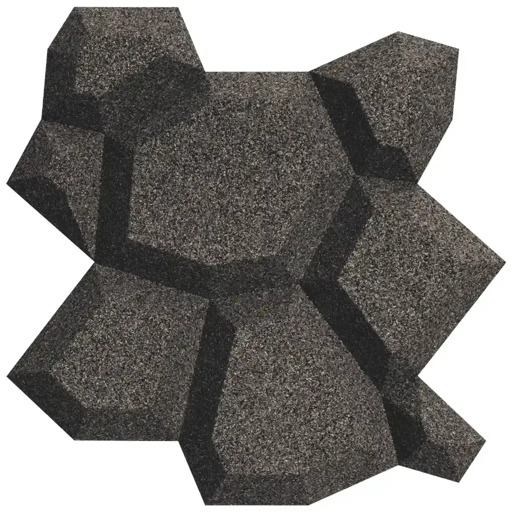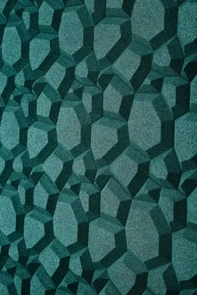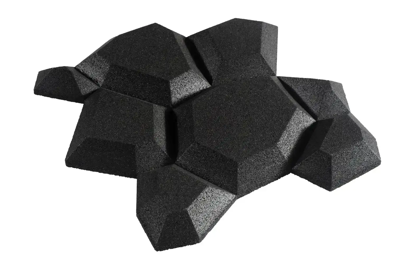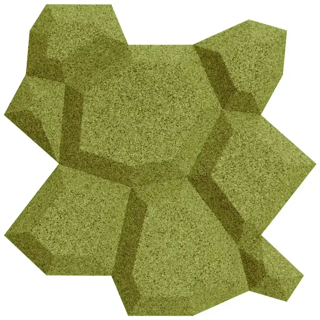 Peças maciças de cortiça aglomeradas com resinas e aditivos especiais, moldadas com pigmentação de cor na massa.