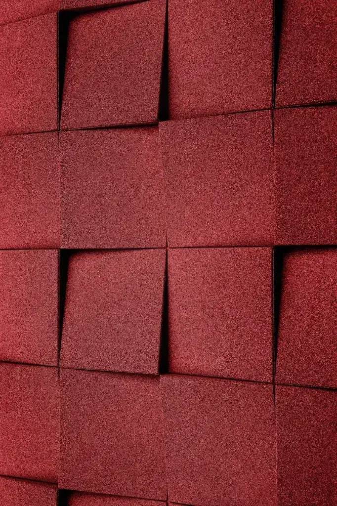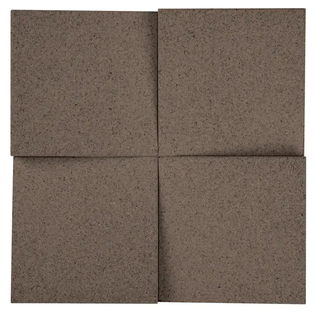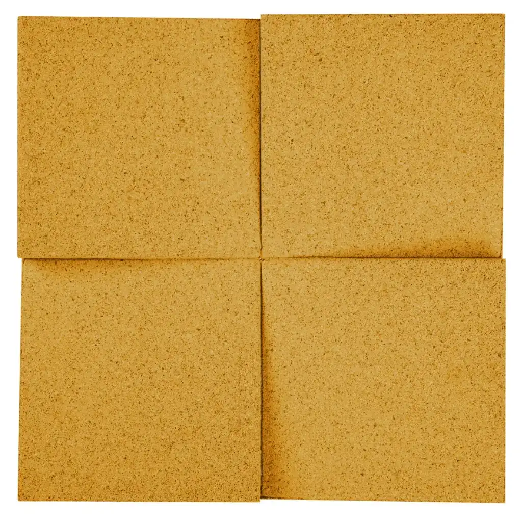 Peças maciças de cortiça aglomeradas com resinas e aditivos especiais, moldadas com pigmentação de cor na massa.